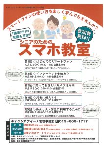 シニアのためのスマホ教室(キオクシア アイーナ管理事務室)