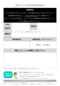 または、申込用紙にご記入の上、NPO活動交流センターまでFAX・メールでお送りください。