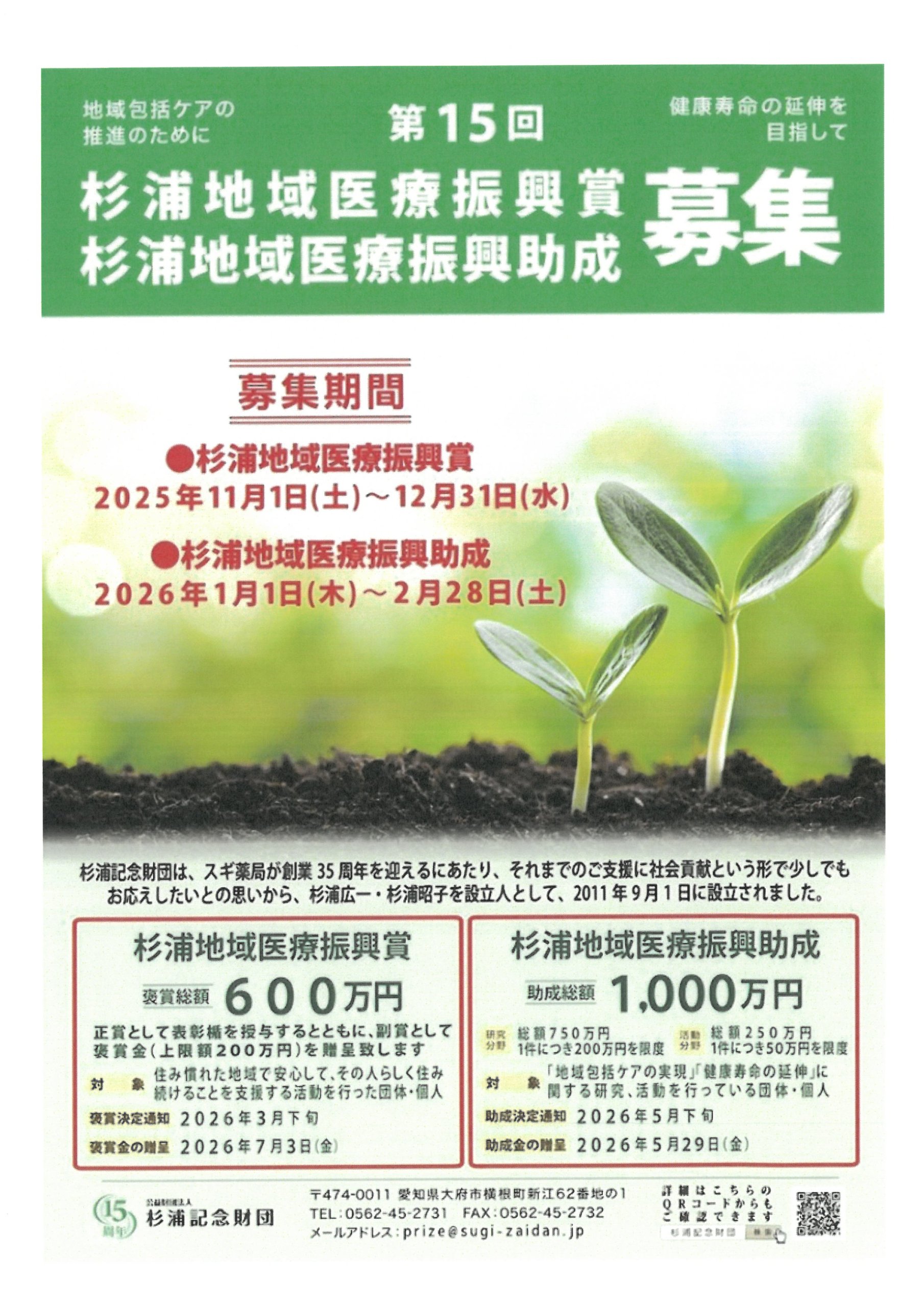 【表彰】第15回杉浦地域医療振興賞(杉浦記念財団)