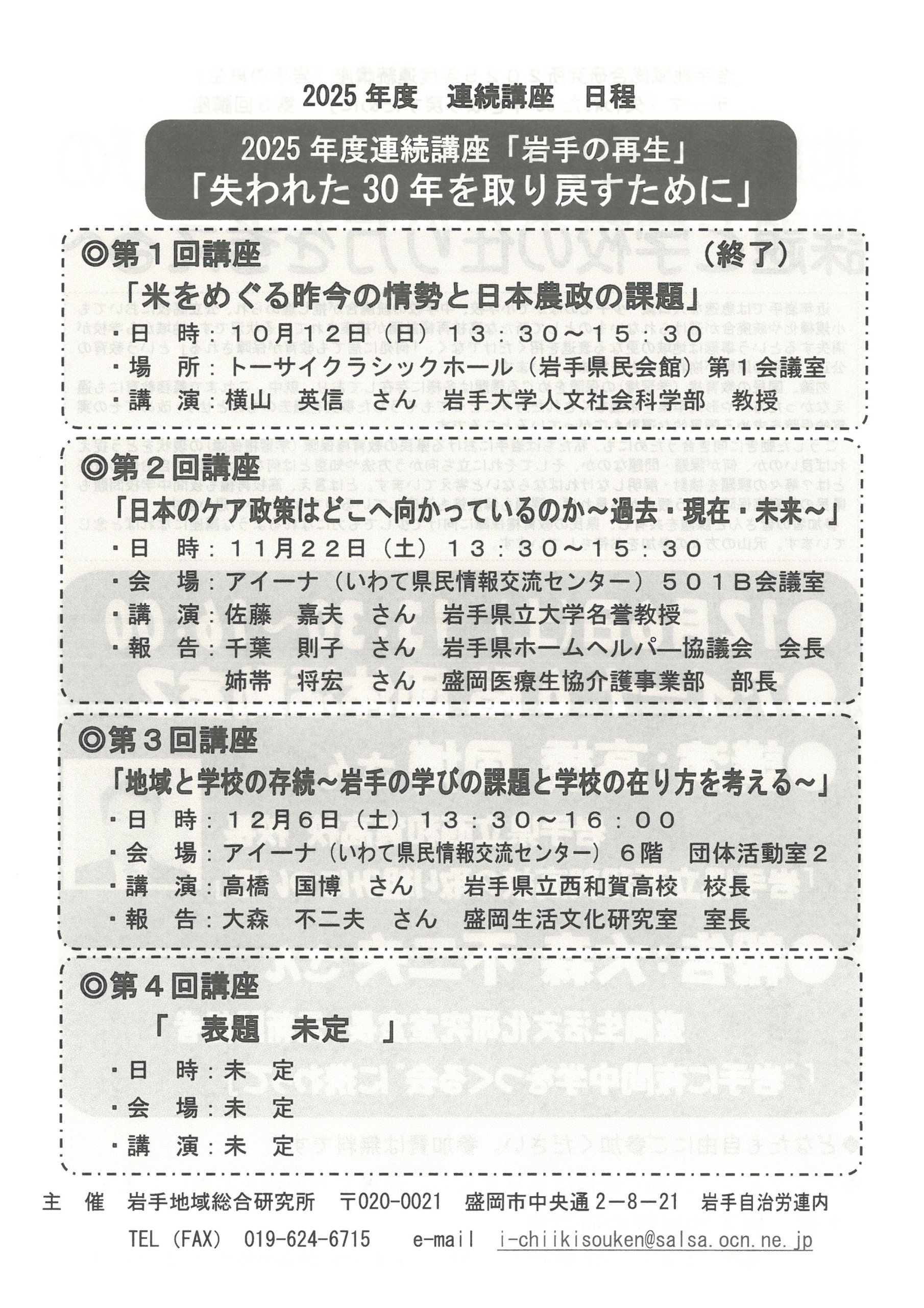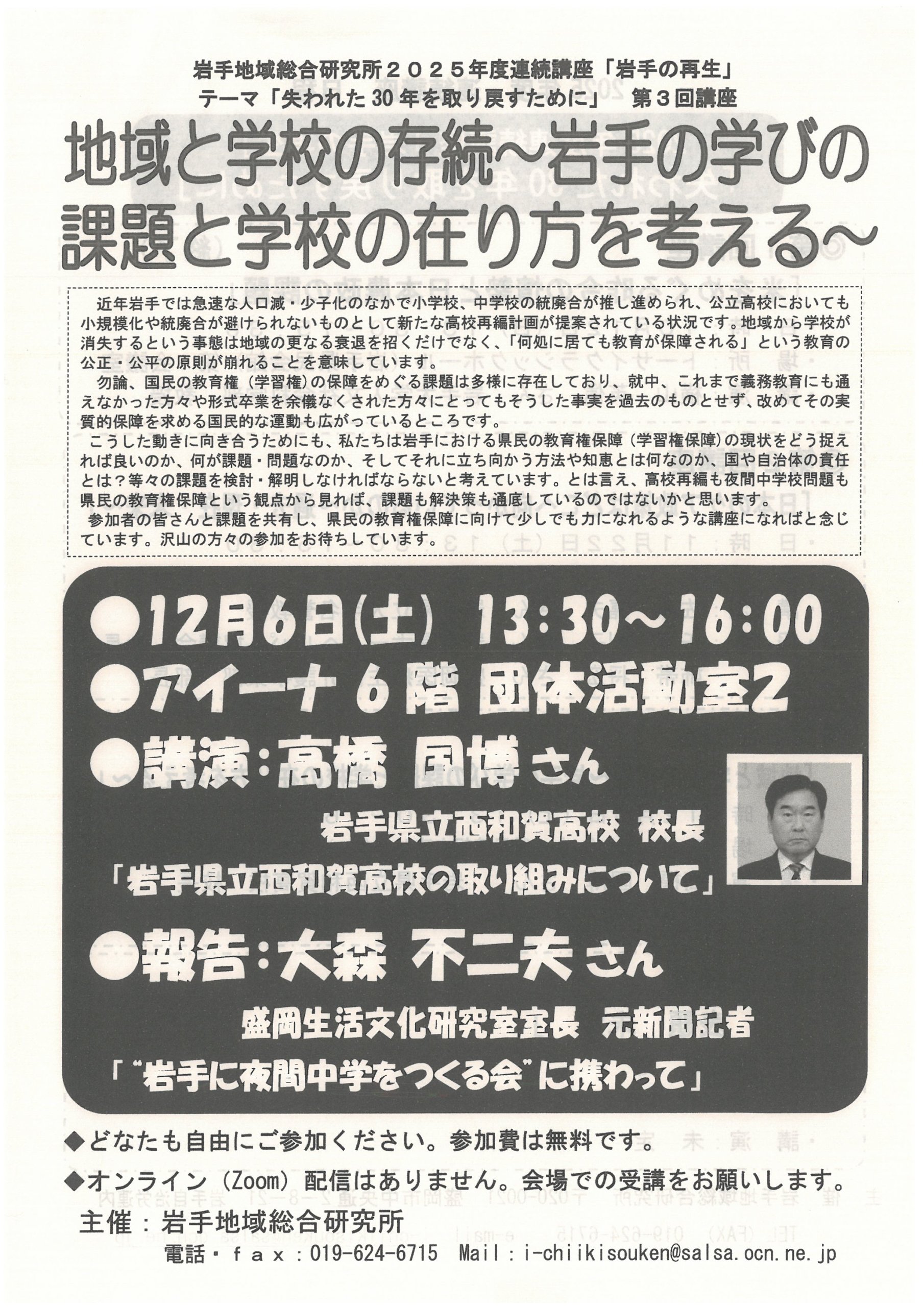地域と学校の存続~岩手の学びの課題と学校の在り方を考える~(岩手地域総合研究所)