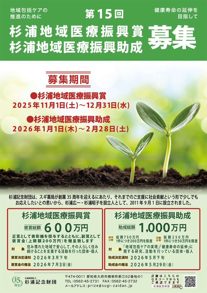 【助成金】第15回杉浦地域医療振興助成(杉浦記念財団)