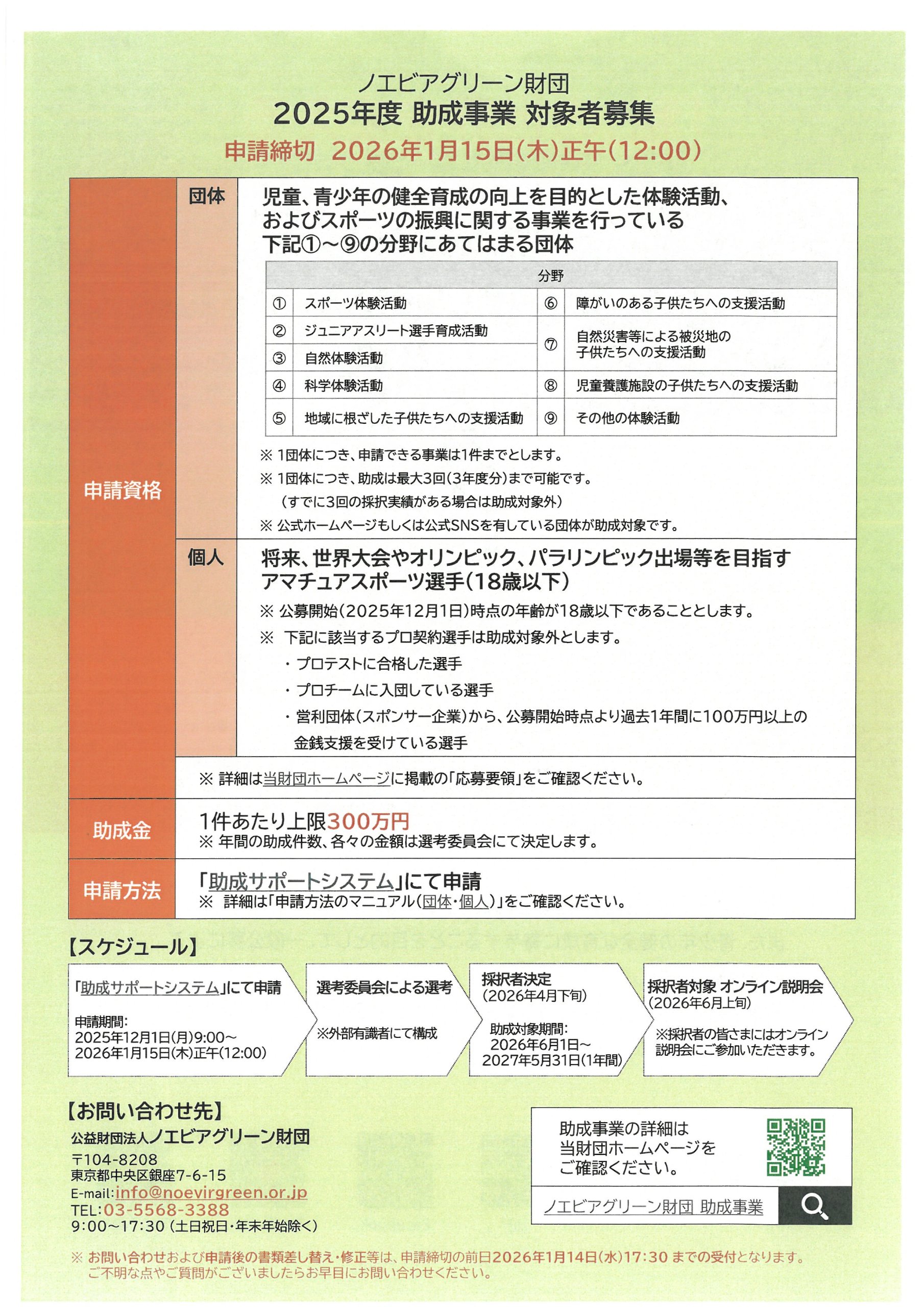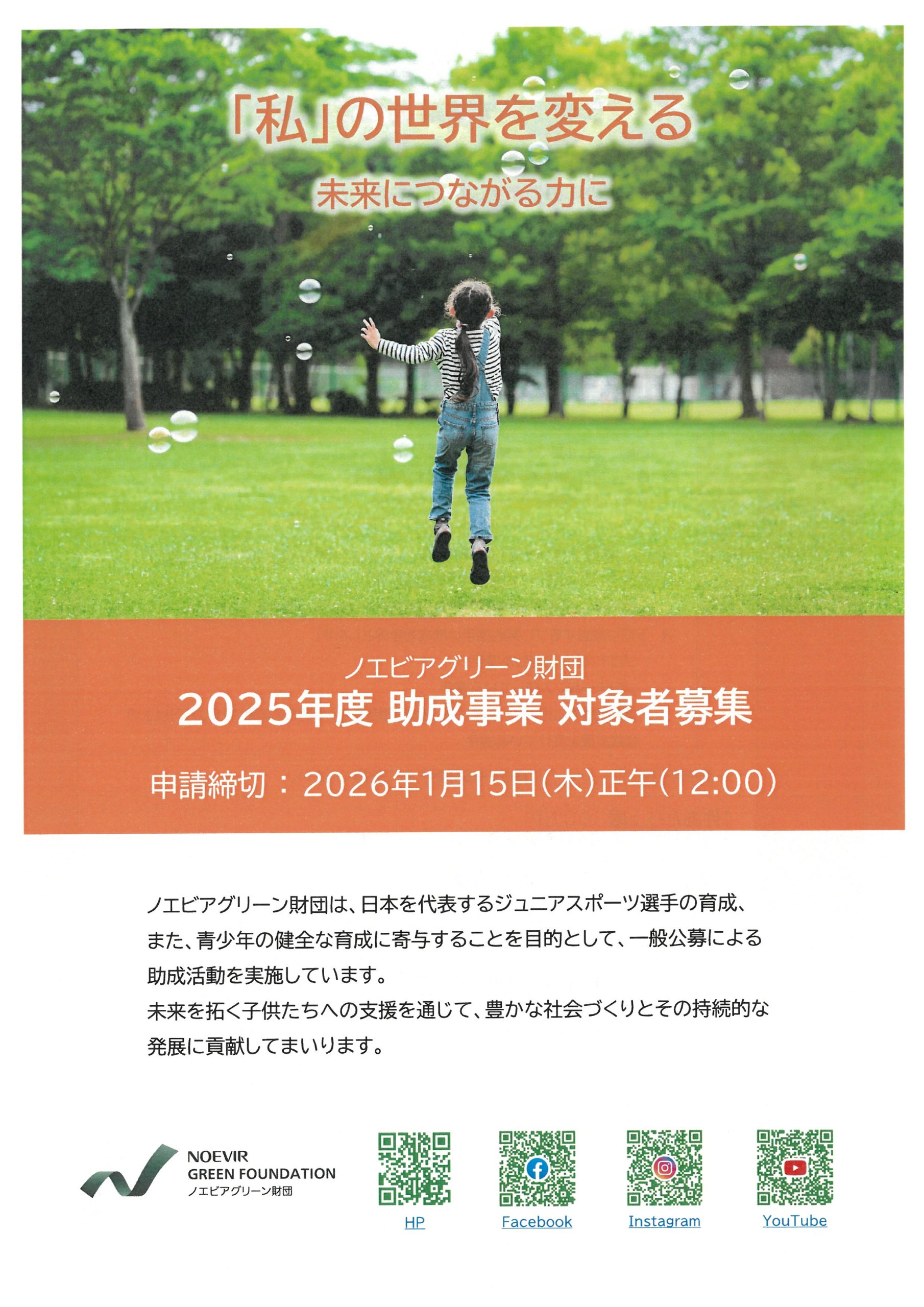 【助成金】2025年度 助成事業対象者募集(ノエビアグリーン財団)