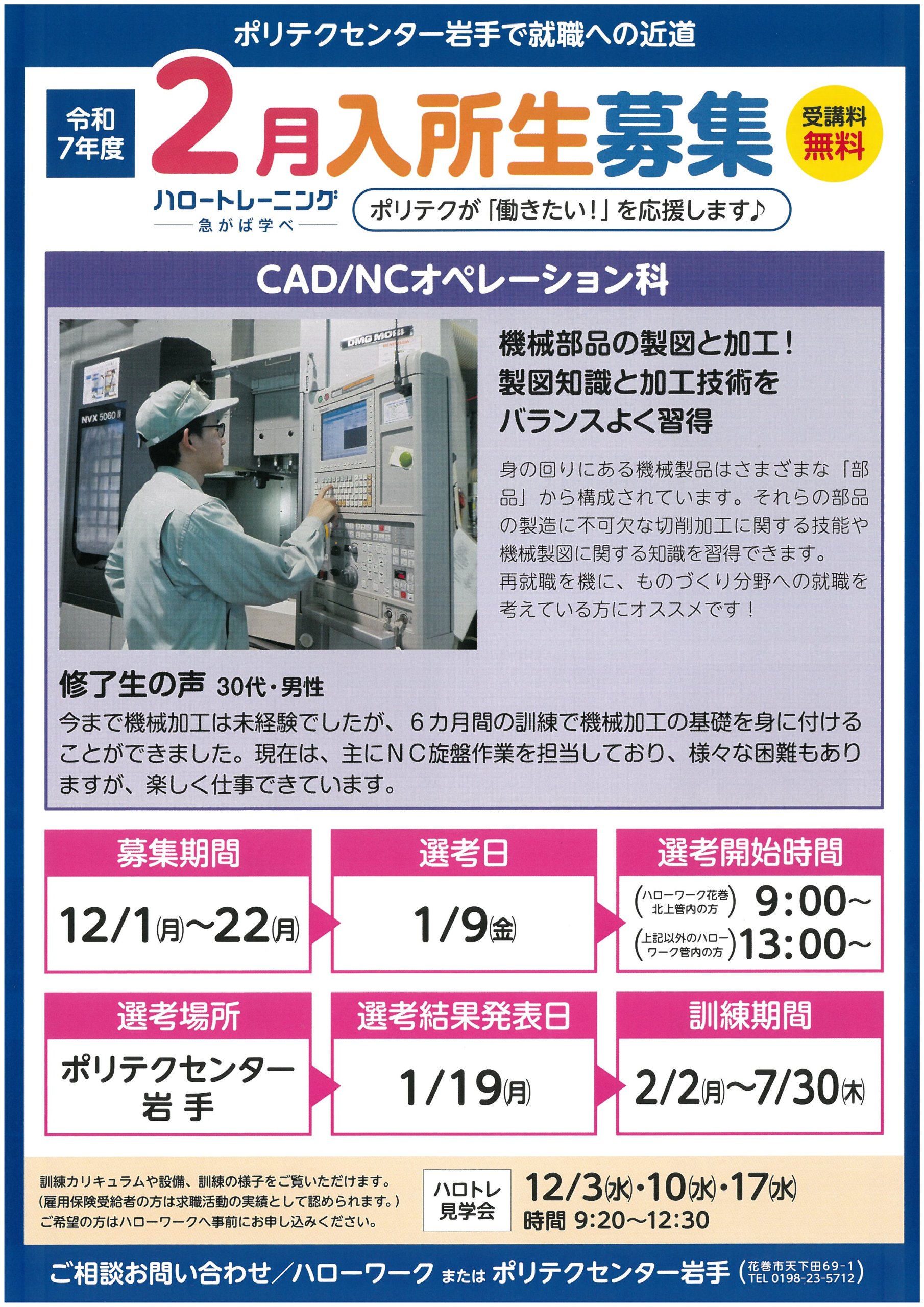 令和7年度 2月入所生募集(ポリテクセンター岩手)
