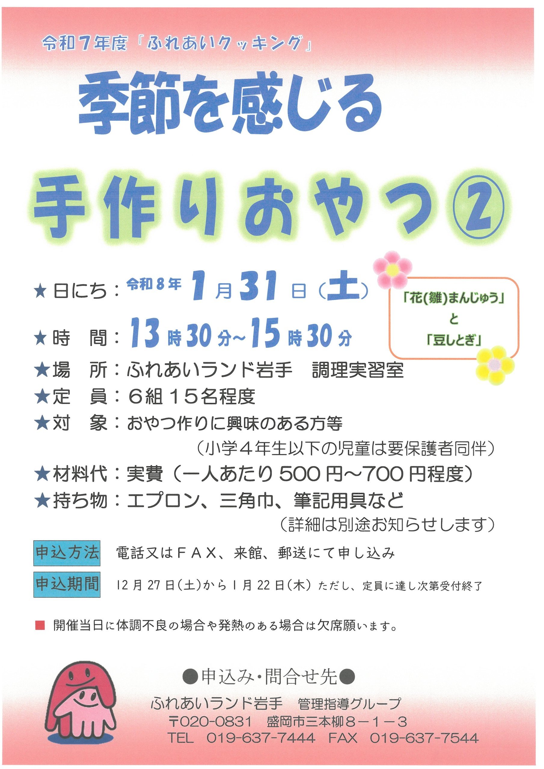 【日時】2026年1月31日(土)13:30~15:30 【場所】ふれあいランド岩手 調理実習室 (盛岡市三本柳8-1-3)
