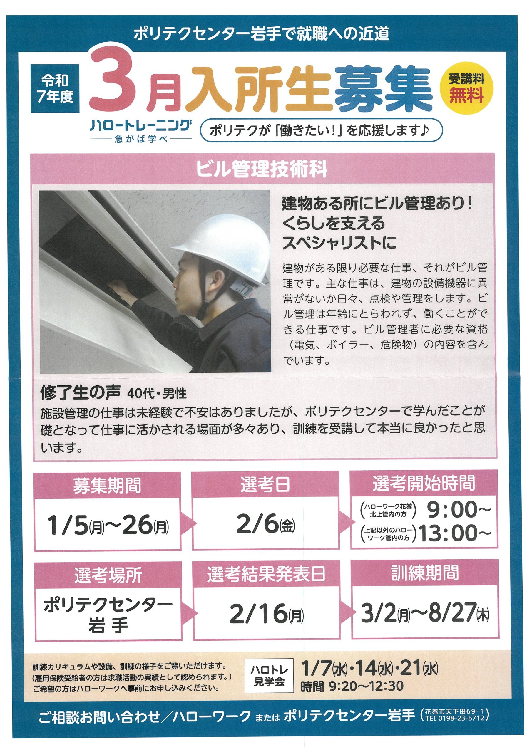 令和7年度 3月入所生募集(ポリテクセンター岩手)