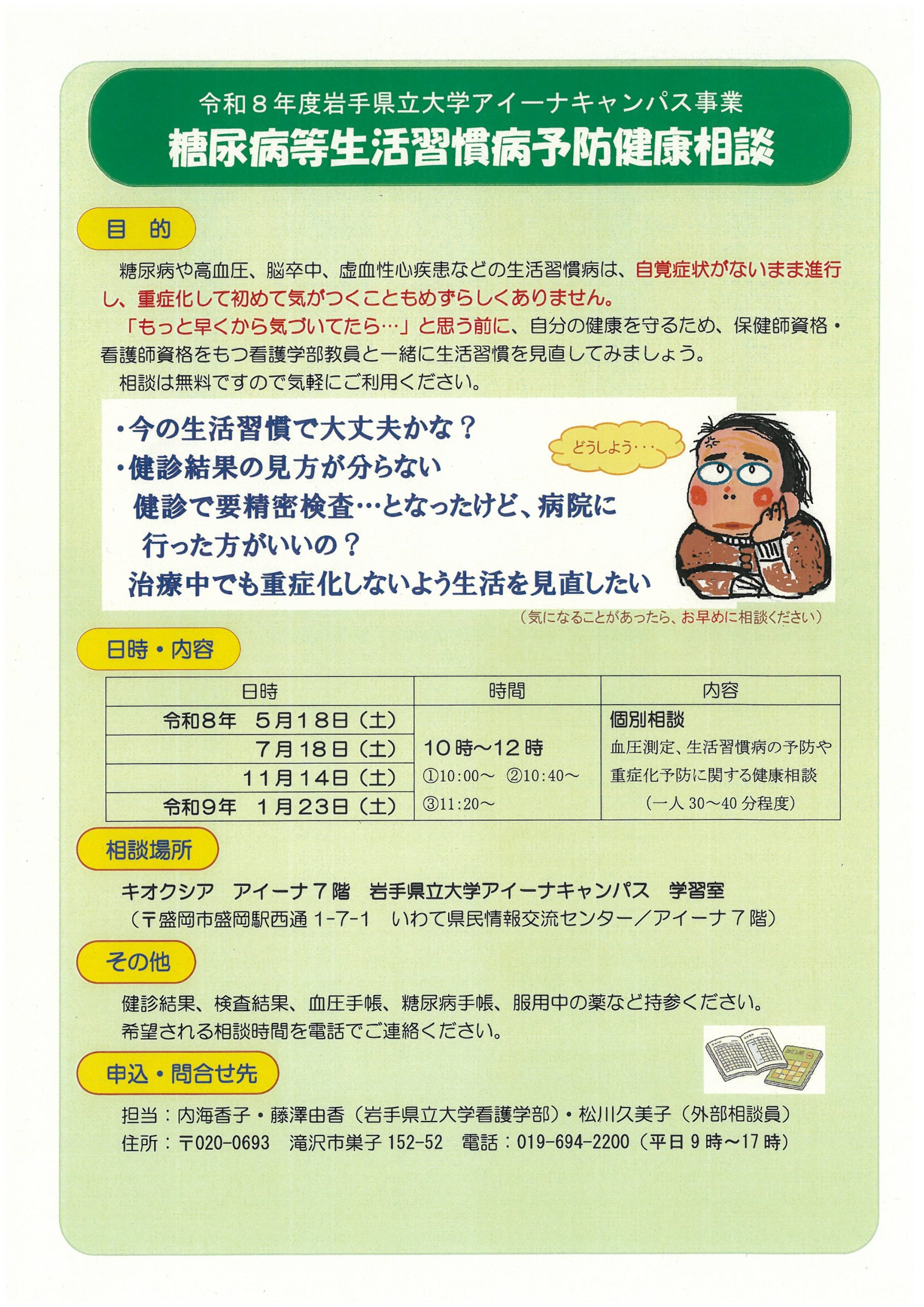 令和8年度 糖尿病等生活習慣病予防健康相談(岩手県立大学看護学部)