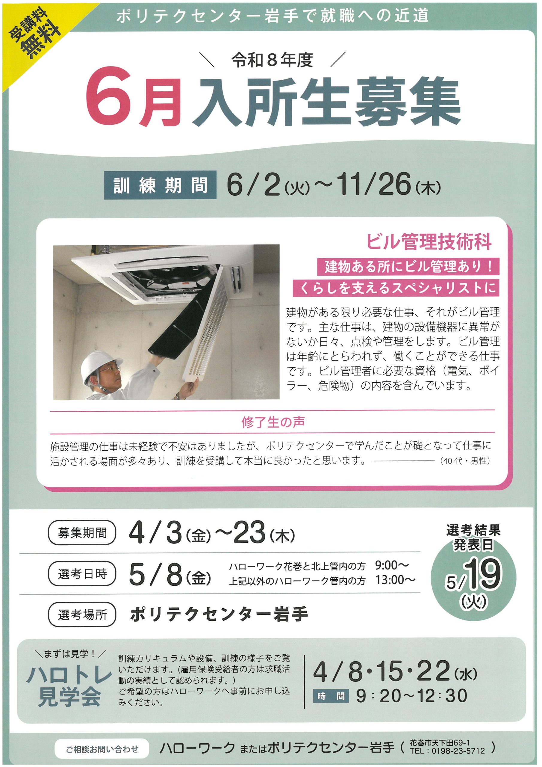 令和8年度 6月入所生募集(ポリテクセンター岩手)